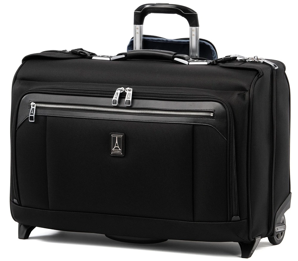 Need to take a short business trip and pack easily? The Travelpro platinum elite carry on rolling garment bag is the solution. Pack your suits on your own hanger and place them neatly in the bag. Use the pockets and compartments for accessories. Then simply fold the Travelpro Platinum Elite carry on garment bag and go! With a Travelpro worry free warranty, even airline damage is covered. This is a popular way to travel for many businessmen and women. Shipping is FREE along with a FREE leather baggage tag monogrammed with your initials for easy identification wherever you travel.