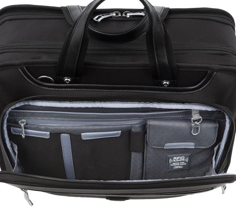 Performance driven, the Travelpro Platinum Elite expandable business brief holds it all! Well designed, it has convenient pockets and compartments to keep you well organized. Carry the Travelpro Platinum Elite business brief by the double handles or the removable shoulder strap. Or you can easily slip the Travelpro Platinum Elite expandable business briefcase over the trolley handle of your rolling luggage securely. It even has an RFID blocking to protect your passport and credit cards from radio frequency identity theft. Need more room and you can easily expand the Travelpro Platinum Elite business brief!
