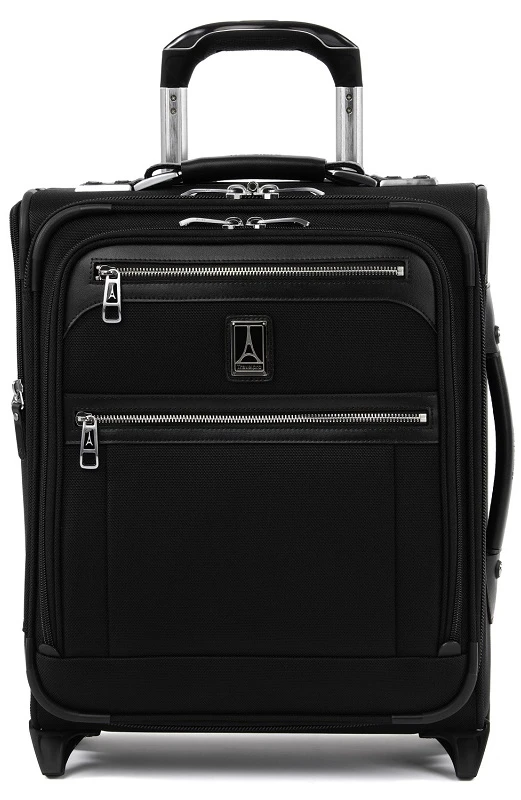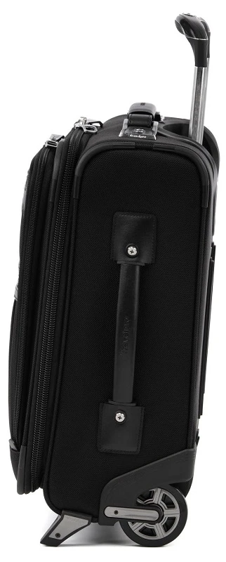 Pocket happy, the Travelpro Platinum Elite regional carry on rollaboard luggage is light in weight at just six and a half pounds. It is built to travel near and far to take on board most domestic and internation flights. The smaller size makes it easy to fit in crowded overhead compartments! Made of ballistic nylon with a Duraguard coating, it has inline skate wheels that can be pushed or pulled and handle curbs and bumps. This Travelpro Platinum Elite regional carry on luggage has a worry free warranty and a USB port that meets TSA requirements. You’ll appreciate the outside zippered pockets for your travel essentials! We include FREE shipping and a FREE leather luggage tag monogrammed with your own initials for easy identification.