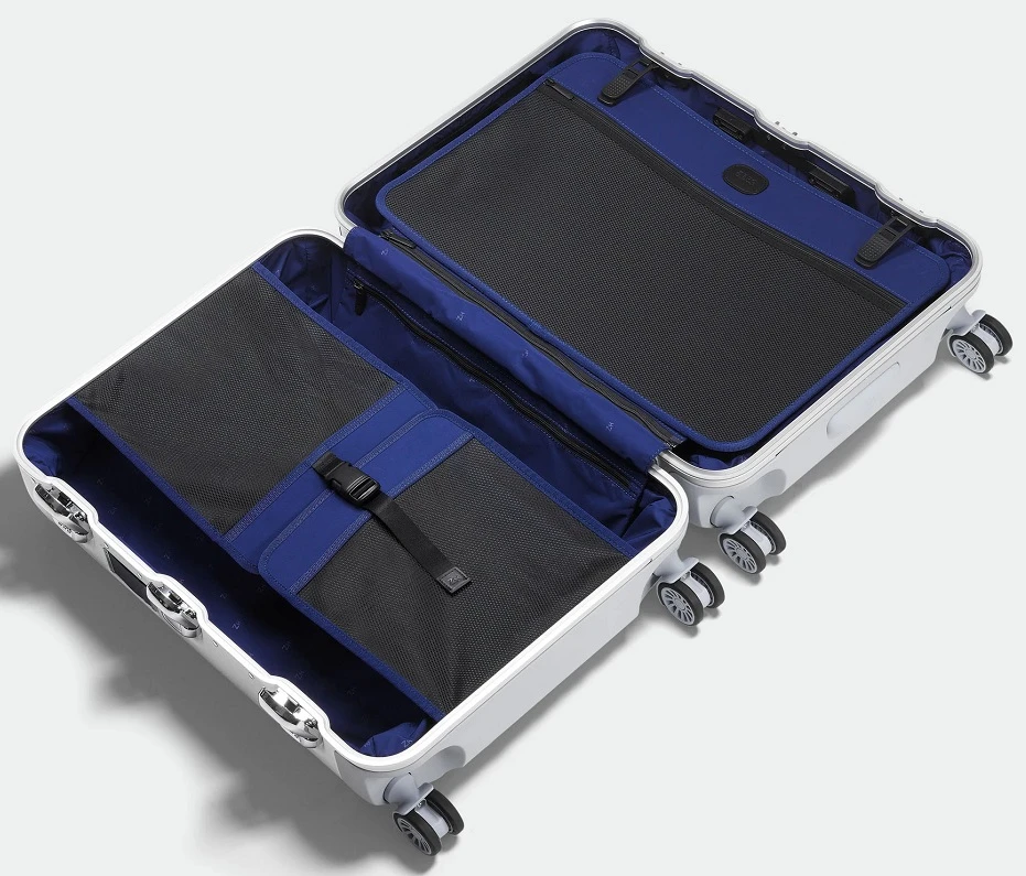 This is the popular size for overseas travel! Plus, the Zero Halliburton pursuit medium luggage will get you there in elegant style. It has easy open and close draw bolts and no zippers to bother you. A built-in TSA approved combination lock keeps the belongings secure and the neoprene gasket keeps out moisture and dust. You can easily roll the Zero Halliburton pursuit medium luggage along in any direction. Made of aluminum, the Zero Halliburton pursuit medium luggage is spectacular! We include FREE shipping and a FREE leather luggage tag monogrammed with your initials for quick identification everywhere you journey.